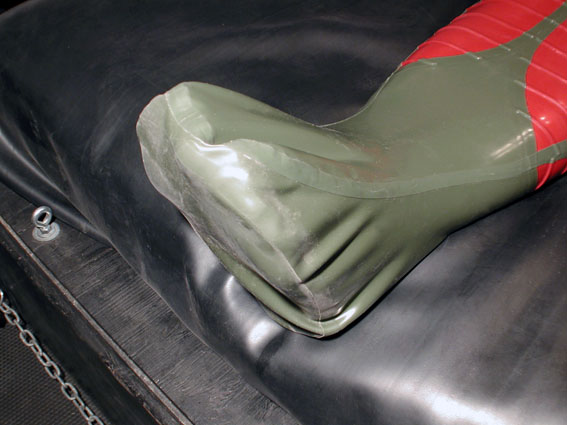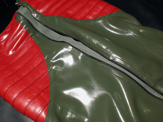 | Manufacturing with latex is nothing less than an art form. It's a delicate material even when working with the heavier weight rubber. Unlike leather which can be sewn and riveted, latex seams are glued together with a special process known only by those who are in the business. |