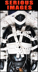 | Getting someone into the creature takes a great deal of time to ensure it is comfortable and secure, and then once everything is underway, it requires a great deal of vigilance to ensure everything is as it should be. It is no good to underestimate the amount of harm that can come from BDSM when it is misunderstood and entered into without an understanding of the equipment, and more importantly, the subject. I've had many conversations with JG, and I know that his desire is to experience everything in a full-on and fearless way. He wants what any masochist wants: to go as far as they can, and then a little bit beyond. |
