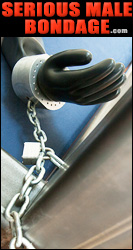 Seriously, in this mind-altering state of pure delight and sensory overload the passage of time seems to be suspended, and you find yourself questioning the reality of your own bondage predicament. You hover in a dream-like trance as your mind, senses and sexuality simmer within the confines of your total rubber enclosure. The steel shackles rattle and clank with your movements, sending vibrations through your body and creating uncontrolled twinges of both fear and excitement...