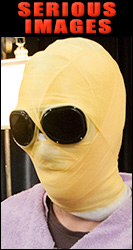 For me, part of the thrill comes when the jacket is being buckled up: all the tugging and cinching, and clinking of the metal buckles. Traditional institutional straitjackets don't usually have as many straps and hardware, but for a bondage enthusiast like me, more is better! For the inexperienced, bucking up a straitjacket can be an intimidating task, but for the staff of seriousbondage.com it's second nature. |
