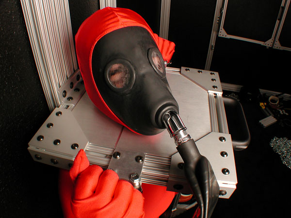 CAUTION: Any kind of rubber hood or device which you breath through can be dangerous and even fatal. Although hoods, gasmasks, breathing tubes and rebreather bags can heighten the experience of helplessness and bondage, they can be very |