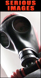 Blinded and deafened in the gas mask. As you can see, I'm preparing for the play session, and could not stop the shivering anticipation of what was to soon come. My 'controller' was very happy to watch and assist while I dressed, and anxiously waited to take the controls.