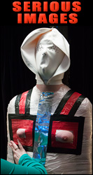 The playfulness of the women confined in the fiberglass casts is what caught our attention. |