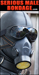 This woman is into gas masks, leather, rubber, and metal restraints and sensory deprivation! |